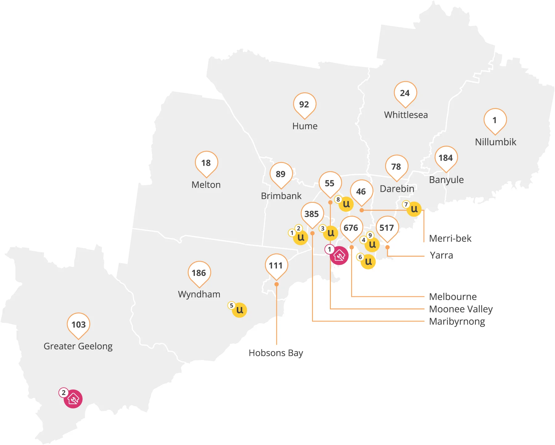 Unison manages 2,566 properties, including over 1,396 owned by the organisation across 15 LGAs.