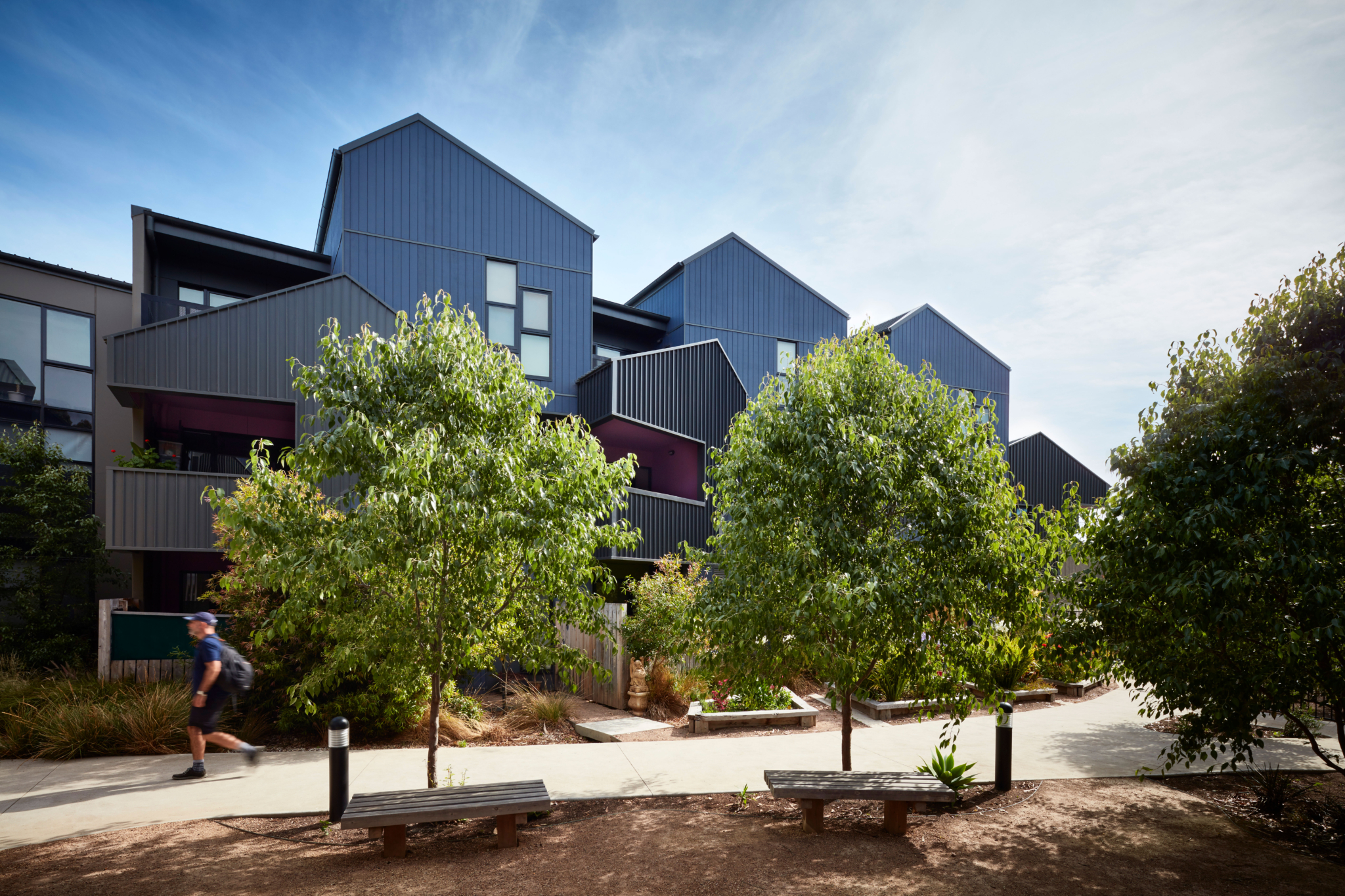 The community is managed by Unison, while the building itself is owned by the Department of Health & Human Services (DHHS). The self-contained apartments support independent living, and the landscaped central courtyard, with its leafy outlook and benches provide a gathering place where renters can relax and enjoy time together.